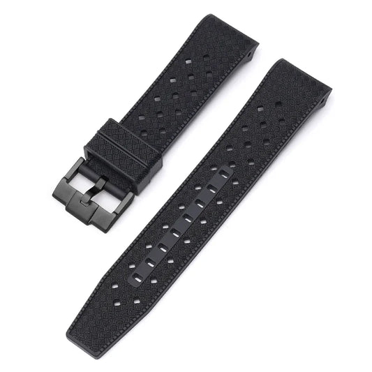Textured Curved Rubber Watch Strap for Swatch X Blancpain - Black